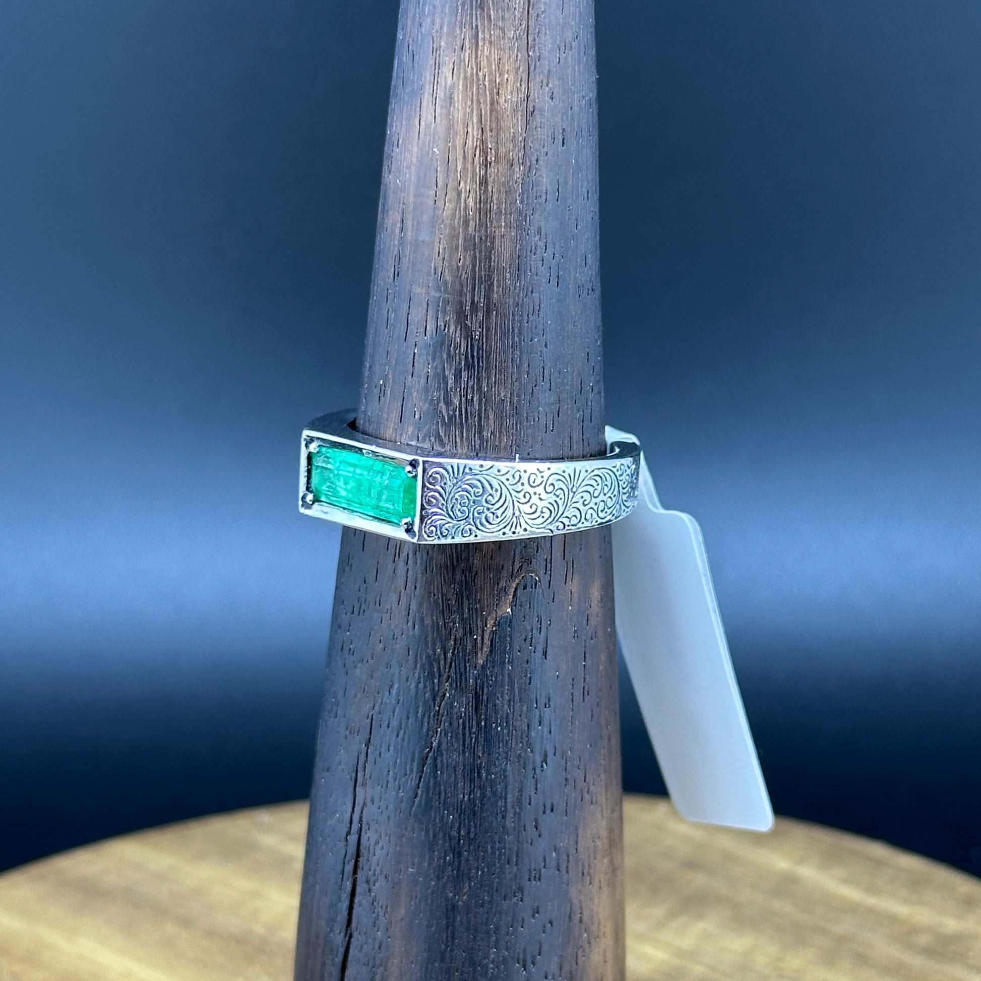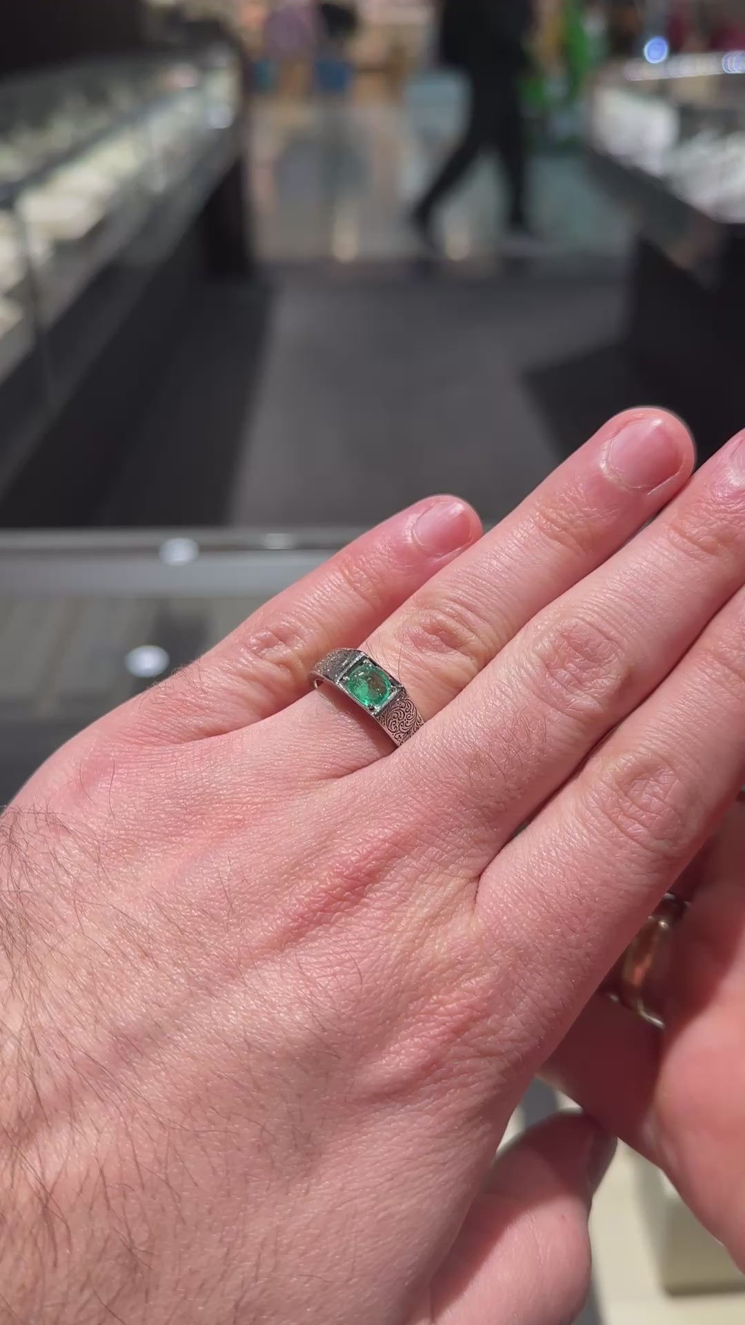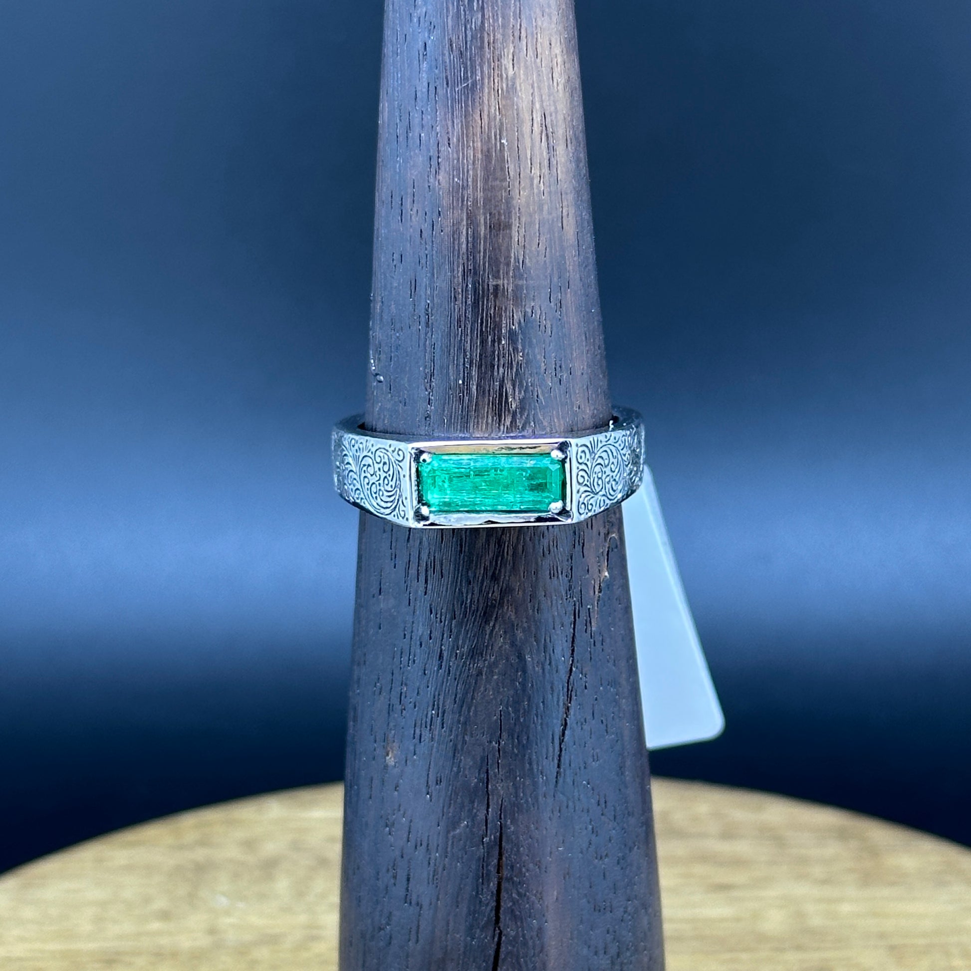 This exquisitely beautiful ring is truly a work of art, entirely handcrafted. At its center, there’s a stunning, clear emerald from the Panjshir region of Afghanistan. The edges are hand-engraved, adding a special charm to the piece, and once again, because it’s completely handmade, it’s a truly unique piece that you can be lucky enough to own.